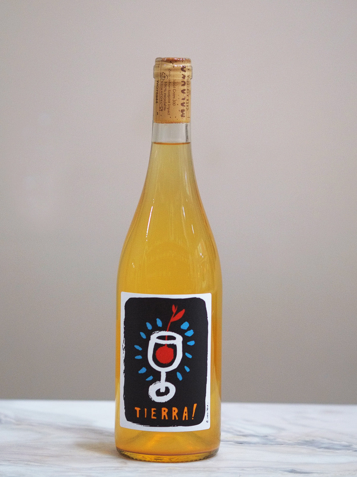 A captivating orange wine from the heart of Italy's Piemonte region, Tierra! 2021 by Malauva is a blend of Procanico, Druppeggio, Verdello, and Malvasia grapes. With its rich amber hue, this wine offers aromatic layers of citrus zest, dried herbs, and a touch of honeyed sweetness. On the palate, it’s bold yet balanced, with a slight tannic grip that adds texture and depth.