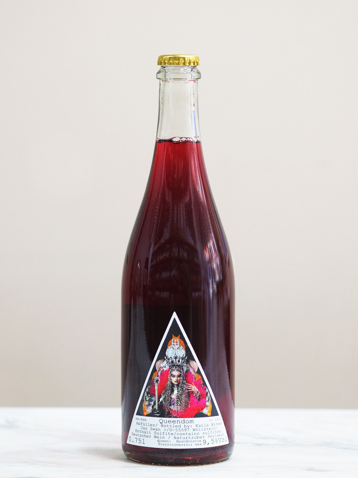 My Dark Queen from Katla Wines draws you in with its deep, brooding color, only to surprise with a light and playful character in the glass. Regent lends five days of semi-carbonic maceration, adding richness and intensity, while Pinot Gris spends two weeks fermenting the same way, layering texture and intrigue. Riesling, pressed directly, brings clarity and freshness, tying the cuvée together. Bottled in clear glass and lightly sulfured at just 8 mg/l, the wine captures the essence of forest fruits—brambles, blackberries, and blackcurrants—lifted by a supple structure and bright, clean acidity.